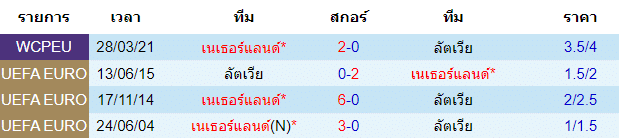 เซียนวิเคราะห์ : เจ้าบ้าน ลัตเวีย ผลงานโดยภาพรวมในรอบนี้ของพวกเขานั้นทำผลงานได้ค่อนข้างเป็นไปตามทรงของชื่อชั้นและศักยภาพทีม เพราะ ลงเล่นมาแล้วทั้งหมด 6 นัด เป็นการ ชนะ 1 เสมอ 2 แพ้ 3 เกมด้วยกัน ขณะที่ทีมเยือน “อัศวินสีส้ม” เนเธอร์แลนด์ ผลงานโดยภาพรวมในรอบนี้ของพวกเขานั้นถือว่า ทำผลงานได้ค่อนข้างเป็นไปตามคาดของทีมเต็ง เพราะ ลงเล่นมาแล้ว 6 นัด เป็นการ ชนะ 4 เสมอ 1 แพ้ 1 เกมด้วยกัน และ เกมนี้ “อัศวินสีส้ม” เนเธอร์แลนด์พวกเขาจะได้บุกมาเจอกับทีมเจ้าบ้านที่มองว่า ก็ไม่น่าจะดูเป็นงานที่ยากอะไรนักเพราะ ถ้าเทียบกันดูจากทั้งในเรื่องของ ฟอร์มในรอบนี้ที่ผ่านมา และ ศักยภาพทีมโดยภาพรวมของทั้งสองทีมนี้กันดู ต้องบอกว่าเป็นทางด้านทีมเยือนอย่าง “อัศวินสีส้ม” เนเธอร์แลนด์ ที่ยังดูเหนือกว่า และดูดีกว่าทางด้านทีม ลัตเวีย ที่เกรดบอลยังดูห่างชั้นกับพวกเขาอยู่เยอะในทุกๆมุม และเป็นที่แน่นอนว่าเหล่าขุนพล “อัศวินสีส้ม” เนเธอร์แลนด์ จะสามารถกำชัยเก็บ 3 คะแนน ออกไปได้อย่างแน่นอน