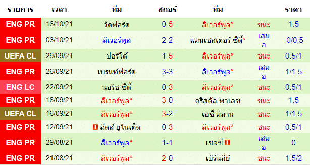 สถิติการลงเล่น 10 นัดหลังสุดของทั้งสองทีม