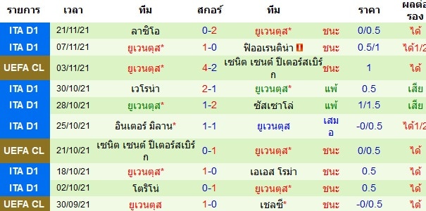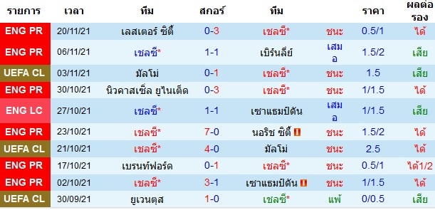 สถิติการลงเล่น 10 นัดหลังสุดของทั้งสองทีม