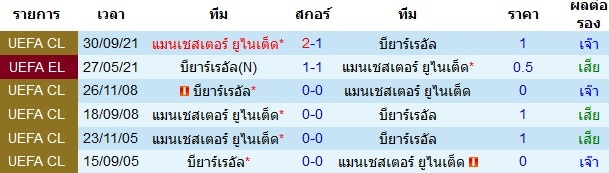 สถิติการพบกันของทั้งสองทีม