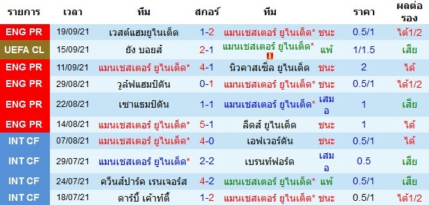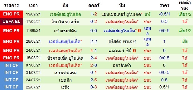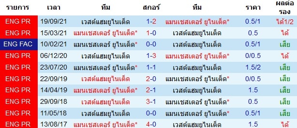 สถิติการพบกัน 10 นัดหลังสุดของทั้งสองทีม