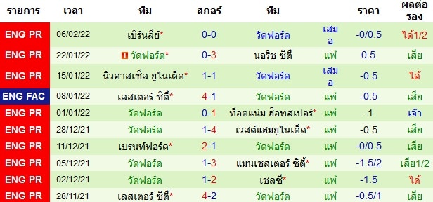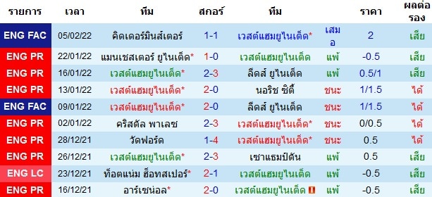 สถิติการลงเล่น 10 นัดหลังสุดของทั้งสองทีม