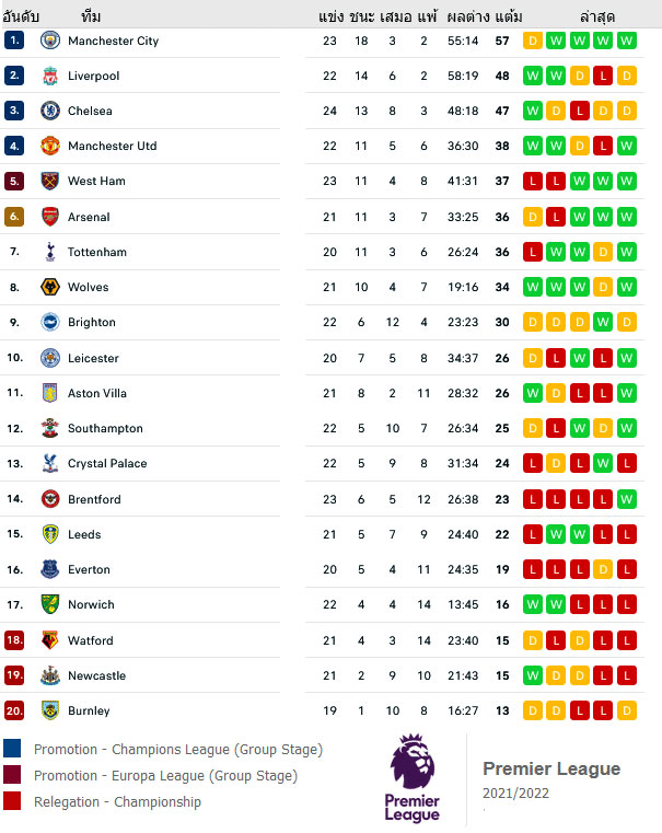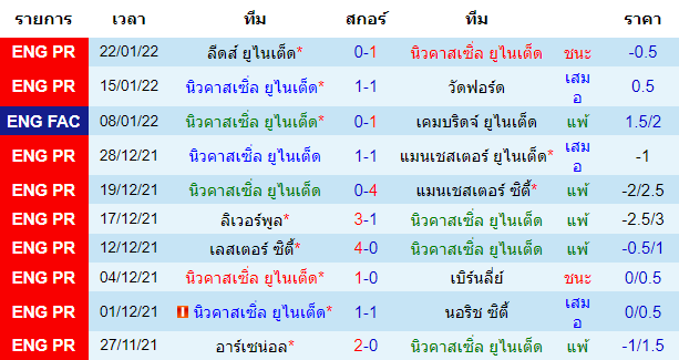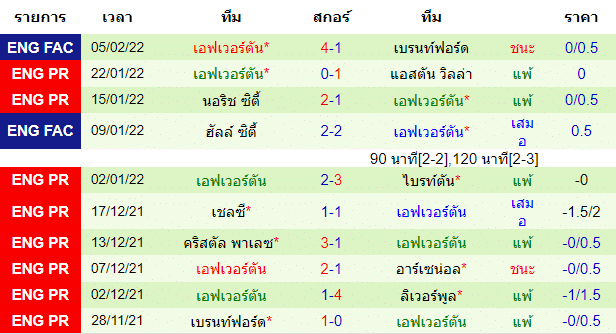 สถิติการลงเล่น 10 นัดหลังสุดของทั้งสองทีม