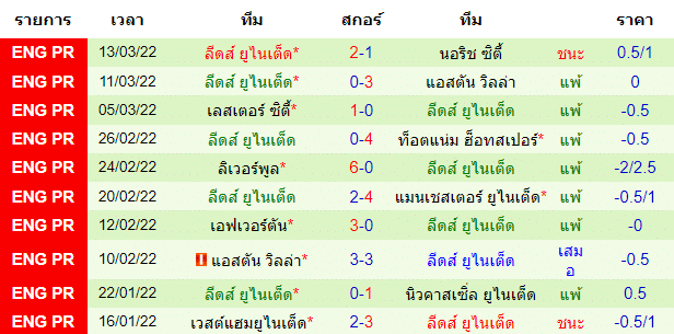 สถิติการลงเล่น 10 นัดหลังสุดของทั้งสองทีม